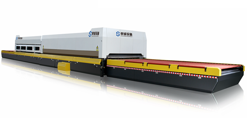1.數(shù)倍于常規(guī)設(shè)備的爐長(zhǎng)和風(fēng)柵,可以使玻璃在單向運(yùn)動(dòng)中被加熱到可鋼化溫度,并被迅速鋼化、冷卻;